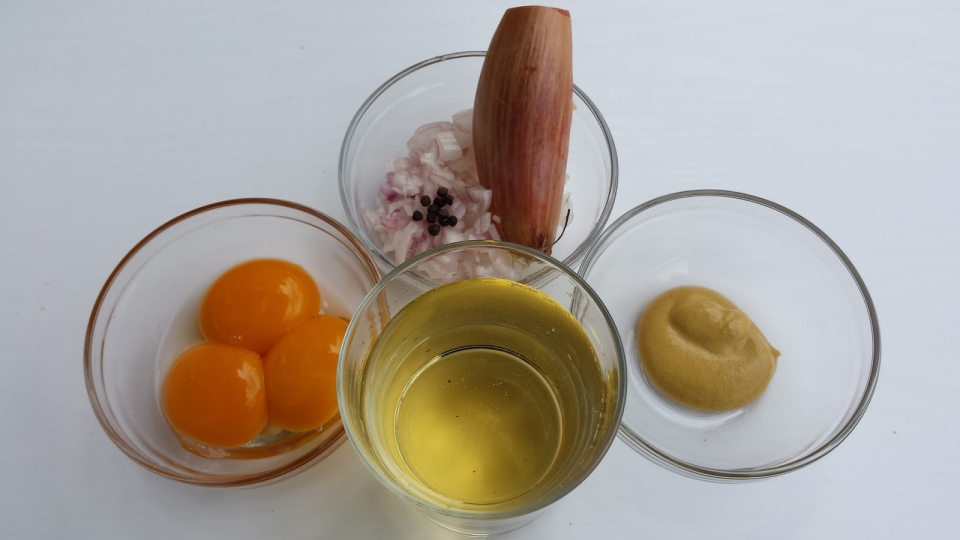 šalotka | 1 ks | pepř | 10 kuliček | dijonská hořčice | 1 lžička |