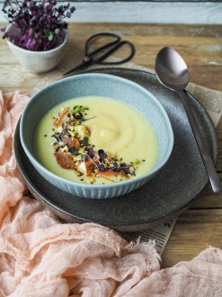 Brambory nejsou jen skvělá příloha, ale já je miluji i v krémových polévkách. I z toho důvodu, že máme v rodině dva celiaky, snažíme se pomocí brambor vše zahušťovat. Ať už je to klasická česká bramboračka, česnečka, krkonošské kyselo nebo jakákoli krémová polévka, brambory poslouží krásně jako zahušťovadlo. Pro tentokrát jsem pro vás ale připravila fenyklový krém s oříškovou granolou, protože v polévce ten křupavý prvek dělá divy.